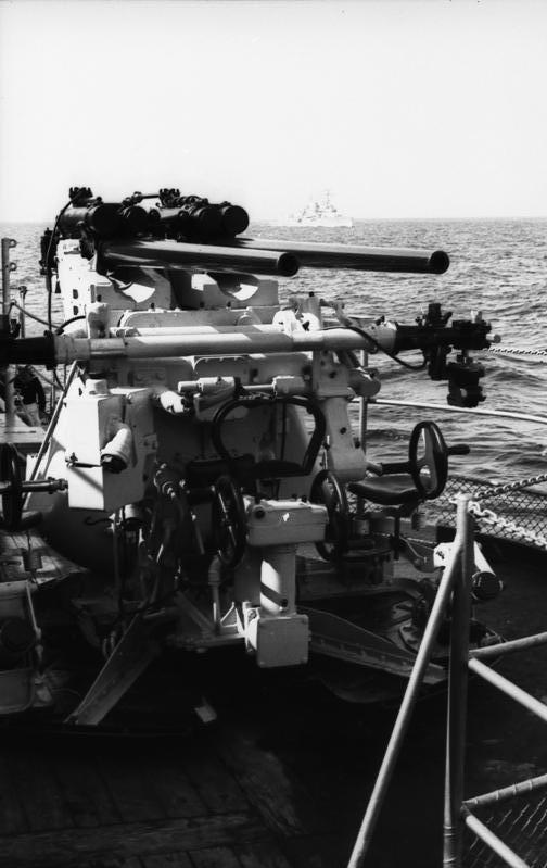 Поздно вечером 8 мая Германия капитулировала перед западными союзниками (в СССР в этот момент уже наступило 9 мая). Жизнь на немецких кораблях, оказавшихся в Копенгагене, шла прежним чередом. Вечером 9 мая в аэропорту Копенгагена высадилась рота 13 парашютного батальона 6-й британской воздушно-десантной дивизии, затем появились и английские моряки. К ним примкнул военный корреспондент Вудворд, который стал свидетелем следующей исторической сцены: