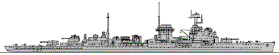 | светло-серый - верхняя палуба, надстройки, трубы, вентиляторы, мачты и т.п., включая орудия, башни и щиты |