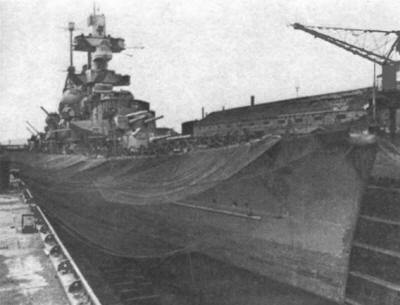 Но к этому времени крупные надводные корабли Германии окончательно вышли из фавора у Гитлера, и работы на практически готовом корабле полностью прекратились в июне того же года.