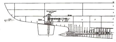 Нельзя сказать, что конструкторы вообще не пытались сэкономить на весе корпуса. Наружная обшивка крепилась исключительно за счет сварных соединений, кроме тех зон, где ее роль брали броневые листы, которые приклепывались к остальным частям обшивки при помощи накладок. По преимуществу сварными были и 29 водонепроницаемых поперечных переборок, деливших крейсер на 14 полностью изолированных отсеков. Образующие их 13 главных поперечных переборок доходили до верхней палубы, остальные выполнялись водонепроницаемыми главным образом до уровня следующей палубы. В соответствии с германской практикой главные отсеки нумеровались с кормы до носа римскими цифрами от I до XIV.
