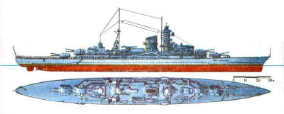 Но если недостатки защиты германских тяжелых крейсеров, обрисовавшиеся еще на чертежных досках, можно понять, то другую их проектную характеристику, оказавшуюся крайне отрицательной, трудно простить и германским адмиралам, и конструкторам. Тем же летом 1934 года решался вопрос о типе энергетической установки. Чрезвычайно удачно выбранные для "карманных линкоров" дизели, обеспечившие им огромную дальность плавания, не вполне подходили в качестве единственных машин для крейсеров. Причин тому было несколько. Уже на "Deutschland" на больших ходах выявилась сильная вибрация, мешавшая, в частности, действию приборов управления огнем, хотя скорость достигала всего 27 узлов. Поэтому для более скоростных крейсеров предлагалось промежуточное решение: дизельная установка для экономического хода и традиционные паровые турбины — для полного хода в бою. Однако и Редер, и руководители конструкторского бюро предпочли принципиально другой вариант: чисто паротурбинную установку с высокими параметрами пара, хотя и из совершенно разных соображений. Высшие офицеры флота прежде всего думали о тактических неудобствах совместного использования чисто дизельных и чисто турбинных единиц, а также кораблей со смешанной энергетикой. Действительно, экономическая скорость "карманных линкоров" составляла 18—19 узлов, тогда как имевший крейсерские дизели легкий крейсер "Leipzig" развивал на них не более 13-ти, и, чтобы двигаться в одном строю с "Deutschland", "Admiral Scheer" и "Admiral Graf Spee", ему приходилось использовать еще и турбины, полностью сводя на нет преимущества комбинированной установки. Такие неудобства играли вторичную роль в случае применения отдельных кораблей в качестве рейдеров (для чего важна прежде всего дальность, а не крейсерская скорость), но как только речь зашла о "большом флоте", тактические несоответствия выходили на первый план. Конструкторы же думали прежде всего о возможности сэкономить вес и упростить инженерные решения, поскольку паротурбинная установка обеспечивала меньшую длину валопроводов, меньшую вибрацию и шум, возможность форсировки (до трети мощности от проектной, вместо 10—15% для дизелей), большую живучесть и надежность самой механической установки (теоретически турбины могли работать в полузатопленных отделениях). Немаловажными соображениями была относительная простота обучения персонала и меньшая численность машинных команд на турбинных судах.