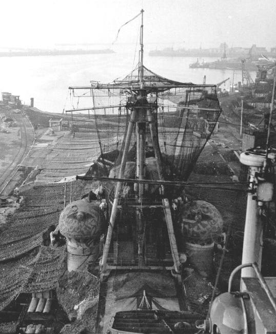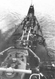 Нижний уровень носовой надстройки включал каюты для вахтенных офицеров, а также первого и второго штурманов, присутствие которых в рубке могло оказаться нужным в любую минуту. Им не приходилось далеко бежать по тревоге — штурманская рубка примыкала к обеим каютам. Над этой рубкой находился пост гидроакустики и боевой информационный центр (БИЦ). Еше выше размещался рулевой мостик, представлявший собой большую открытую платформу с ветровым щитом в носовой части. С обоих бортов платформа оборудовалась еше одной характерной особенностью больших кораблей Германии — узкими и длинными раскладными крыльями, значительно увеличивающими обзор и использовавшимися при маневрировании в стесненных условиях, обычно в портах и на подходах к ним. В открытом море и в бою крылья, представлявшие собой хрупкие конструкции, складывались.