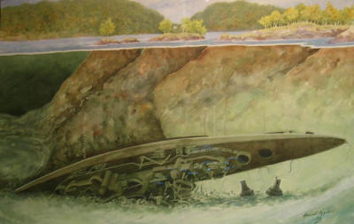 По всем правилам ремонт следовало бы продолжить в доке, но довести крейсер до Кронштадта по полностью простреливаемому противником Морскому каналу оказалось невозможным. Пришлось проводить работы по старинке, как почти 40 лет назад в Порт-Артуре. На заводе изготовили кессон размером 12,5 х 15 х 8 м, который поочередно подводили к пробоинам, откачивали воду и заделывали раны, нанесенные неприятельскими снарядами. Одновременно в помещениях и на палубе продолжались работы по восстановлению артиллерийского вооружения, электрооборудования и механики. А после их завершения оборудование пришлось ставить на консервацию: работы по корпусу велись слишком медленно.