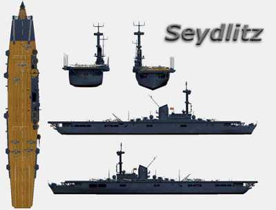 Отсутствие разведки и прикрытия с воздуха неоднократно ставило в тяжелое положение рейдерские группы. Учитывая длительные сроки вступления в строй авианосцев специальной постройки, уже в 1940 году начинаются проработки возможных вариантов переоборудования в авианосцы сначала гражданских судов, а затем недостроенных крейсеров. Особый посыл к необходимости иметь авианосную авиацию дало потопление "Bismarck" в мае 1941 года. Ведь наличие даже нескольких палубных истребителей не позволило бы англичанам провести атаки в высшей мере уязвимыми "Суордфишами", сбавить скорость германского линкора и поймать его линкорными группами. Поэтому немецкие кораблестроители пытались найти пригодные для перестройки в легкие авианосцы корпуса. Одним из таковых сочли "Seydlitz", хотя первоначально предложение было отклонено командованием флота, так как готовность этого корабля уже составляла 90%, и при переоборудовании его следовало бы разобрать вплоть до верхней палубы. Но острое желание иметь авианосец и нежелание иметь еще один бесполезный большой артиллерийский корабль все же вынудили принять решение о перестройке. По некоторым данным, его планировалось переименовать в "Weser".
