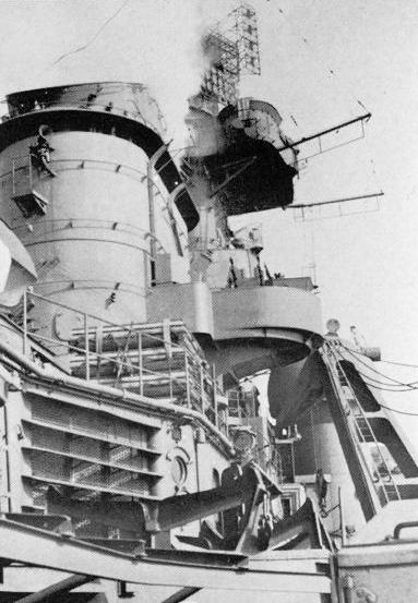 Высокая башенноподобная структура носовой надстройки включала боевые адмиральские помещения, сигнальные посты и многочисленные посты управления системами вооружения. Там же имелся метеорологический пост. Немцы придавали особое значение "службе погоды" непосредственно на корабле, и метеоролог получил просторную рубку и вполне приличную каюту рядом с ней.