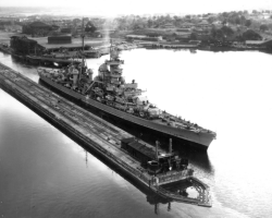 На берег свезли все артиллерийское, радарное и гидроакустическое оборудование, а также 2 орудия главного калибра из носовой башни, две спаренных 105-мм установки и несколько легких зениток. После завершения обследования 11 февраля он отправился в Панамский канал, куда и прибыл 15 февраля.