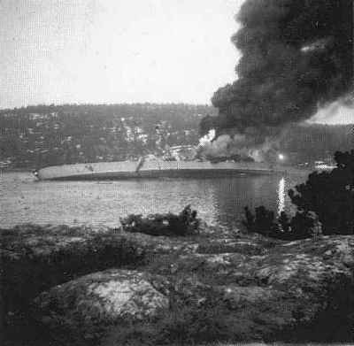 Хотя и на этот раз он остался на плаву, отсутствие команды и какой-либо борьбы за живучесть привело к постепенному затоплению одного помещения за другим. 21 декабря оставшиеся насосы перестали справляться с поступающей водой, корпус накренился, и иллюминаторы оказались ниже поверхности моря. Американцы попытались спасти корабль, выбросив его на берег острова Карлос, но на следующий день последний из германских тяжелых крейсеров опрокинулся и затонул на рифах о. Кваджелейн, где и остается в настоящее время.