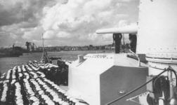 Ремонт продолжался в течение всего следующего года, и уже в январе 1944 года с новой стоянки у Торговой гавани заговорили три оставшихся 203-мм орудия (левая пушка в носовой башне была полностью выведена из строя в 1941-м). Крейсер вошел в состав 2-й артиллерийской группы флота вместе с линкором "Октябрьская революция", крейсерами "Киров" и "Максим Горький" и двумя эскадренными миноносцами. Его артиллерией командовал старший лейтенант Я. К. Грейс. "Петропавловск" принял участие в Красносельско-Ропшинской наступательной операции, выпустив в первый же день, 15 января 1944 года, 250 снарядов. С 15 по 20 января это число увеличилось до 800. А всего за 31 обстрел по врагу было выпущено 1036 снарядов. Орудия корабля-калеки не слишком жалели: на его счет пришлось около трети проведенных стрельб и выпущенных 2-й артиллерийской группой флота снарядов. На окончательном вводе его в строй поставили крест, так что сбережение орудий и боезапаса уже не имело никакого смысла.