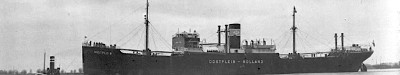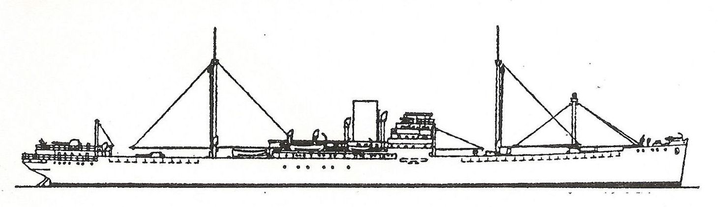 | Это голландское грузовое судно, следовавшее из Кардиффа в Буэнос-Айрес с экипажем из 34 человек и грузом в 5850 тонн угля и кокса, атакован без предупреждения 40 выстрелами из 6-дюймовых орудий с расстояния всего 3500 ярдов, а затем с 2000 ярдов мостик и артиллерийские позиции обстреляны легким зенитным и пулеметным огнем. Весь экипаж судна на двух лодках был благополучно подобран, а корабль потоплен торпедой и дальнейшим обстрелом. |