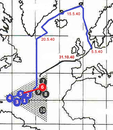 | Норвежский танкер, шедший в балласте из Касабланки в Форт-де-Франс на Мартинике, не пытался вести радиосвязь, бежать или сражаться, поэтому он не был обстрелян. Вместо этого он был отправлен в Брест, который только что попал в руки немцев, и стал первым призовым кораблем, прибывшим в этот порт. Перед отправлением фон Рактешелль приказал заполнить танки морской водой, поскольку пустой танкер, направляющийся в Европу, наверняка привлечет внимание. |
