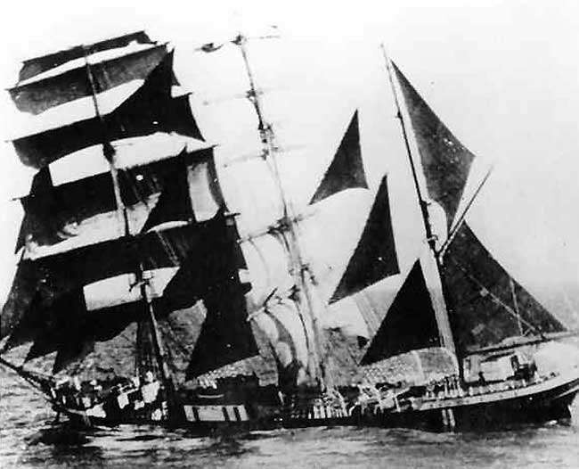 | После двух предупредительных выстрелов этот величественный трехмачтовый нейтральный финский барк под всеми парусами остановился. Он направлялся из Буэнос-Айреса в Лас-Пальмас с грузом 2500 тонн кукурузы и 500 тонн сахара, и принадлежал стране, позже вступившей в войну на стороне Германии, но был потоплен, потому что экспедитор и владелец груза были британцами. Команда из 18 человек была взята на борт рейдера. |