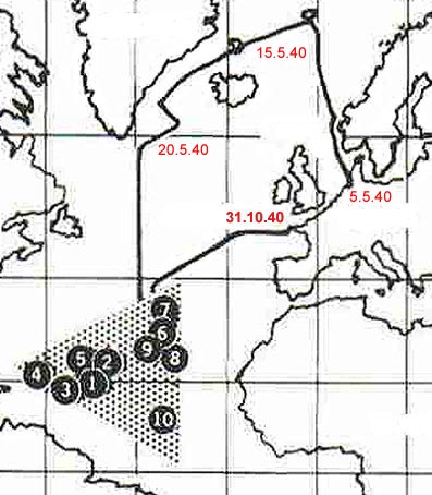 Через два дня после возвращения с учений, вечером 5 мая 1940 г., "Widder" наконец покинул базу и Кильскмм каналом вновь направился в Северное море. В отличие от "Atlantis" и "Orion", район действий ему ограничили участком Атлантического океана, располагавшимся к югу от 40 градуса северной широты и к западу от 30 градуса западной долготы. С запада его ограничивала Панамериканская нейтральная зона, пересекать которую корветтен-капитану строго запретили.
