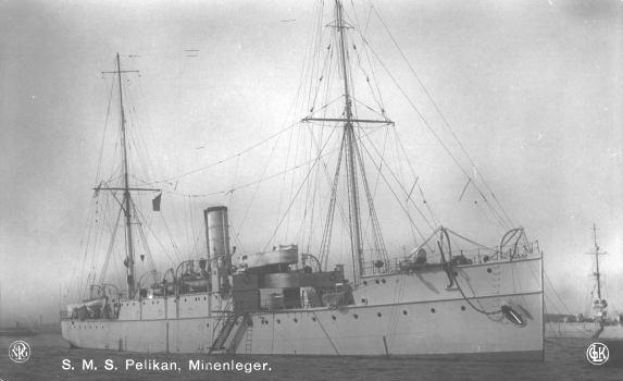 К началу войны "Pelikan" стоял на капитальном ремонте котельной установки на Императорской верфи в Данциге. После окончания этих работ 25 сентября 1914 он поступил в непосредственное подчинения флагмана Флота Открытого Моря как минный заградитель.