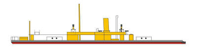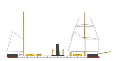 | жёлтый - трубы, мачты, стеньги и реи, котельные помещения для вентиляторов у трубы |