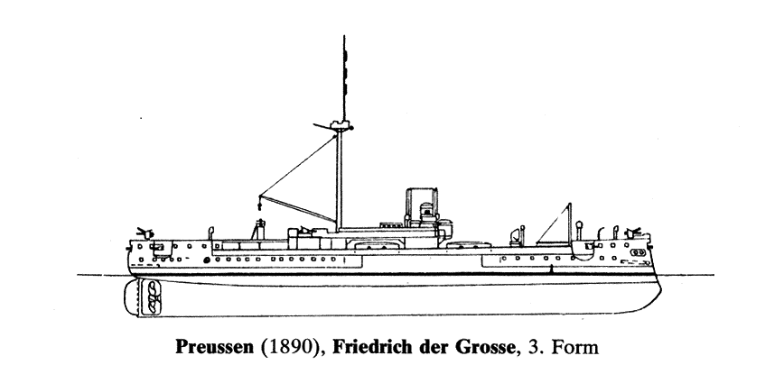 Изменения. Preußen и Friedrich der Große проходили модернизацию постепенно. С 1883 по 1884 год на них установили новые котлы, надстроили палубу юта и сократили рангоут. В 1885-1888 установили пять подводных торпедных аппаратов и две 37-мм пушки Гочкиса. К 1890 сняли фок- и бизань-мачты и бушприт, установили шесть 88 мм орудий. Позже их количество довели до 10. Также корабли снабдили электричеством и установили прожектора.