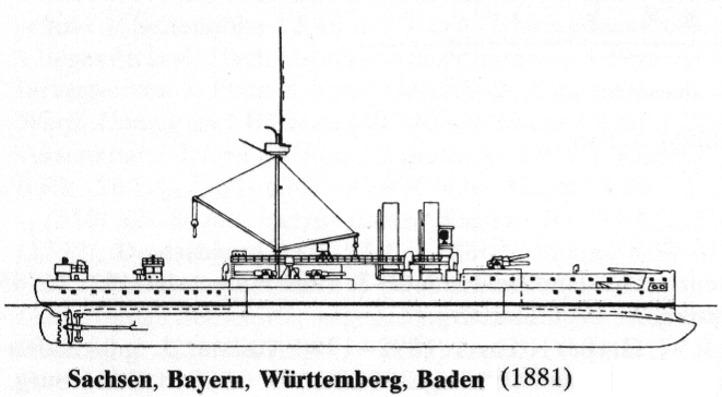 По словам "Moniteur de la Flotte", в середине августа броненосный корвет "Sachsen" выходил из Киля на первую пробу, которая оказалась вполне удовлетворительной. Подобно другим корветам того же типа, "Sachsen" имеет длину 298,4 фута, ширину 59,5 фута, углубление 19,5 ф. и водоизмещение 7398 тонн броню в 16 дюймов толщины. Артиллерия состоит из одного 12-дюймового и четырех 10,24-дюймовых орудий. Машина должна развивать, согласно контракту, 5600 индикаторных сил.