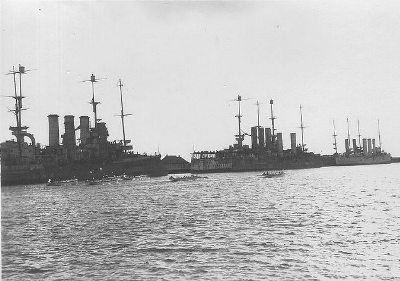 PreußenОбщение между моряками обоих флотов по обыкновению было внешне дружелюбным, но оставаясь всё же, как и во Фленсбурге, куда зашли британские миноносцы, так и в Данциге, куда перед этим также заходили англичане, довольно прохладным. После ухода англичан 29 августа германские корабли вернулись в порты своего базирования.