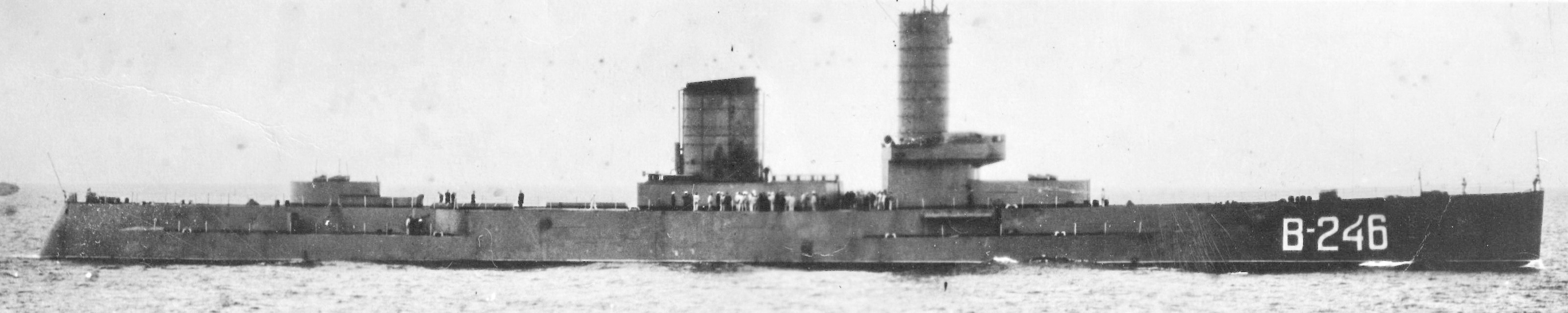 Продан на слом в Вильгельмсхафене. 63-метровая секция центральной части использовалась для испытаний торпед и взрывных устройств. |