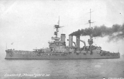HessenВ 1906 г. ставшая уже привычной учебная деятельность действующего линейного флота становилась всё более обширной и многосторонней. Подготовка по программе одиночного корабля сменялась постоянными учениями в составе соединения и эскадры и продолжалась до состоявшихся с 13 мая по 8 июня в Северном море первых в этом году манёвров всего флота, закончившихся походом вокруг мыса Скаген.