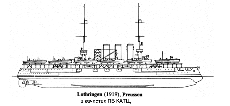 "Preußen" и "Lothringen" в 1919 г. переоборудовали в носители катеров-тральщиков, на активной службе остались "Hessen" "Braunschweig" и "Elsass".