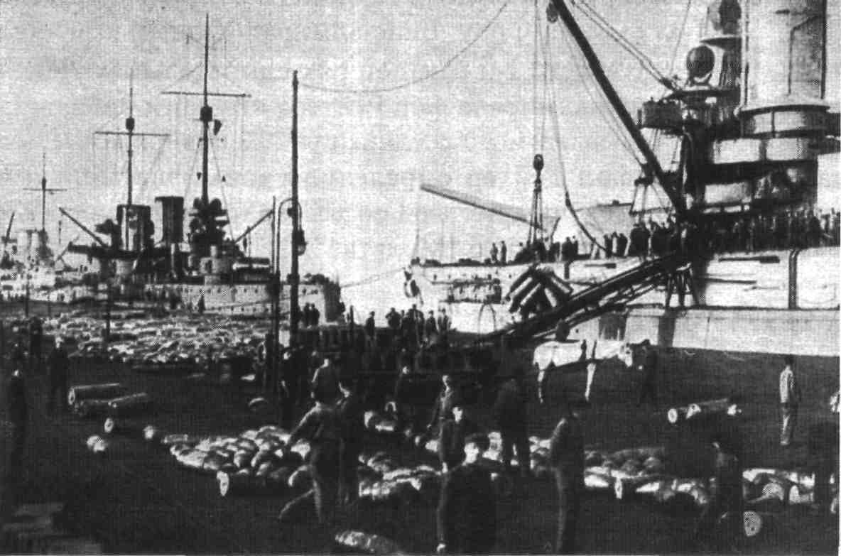 Около 15.00 корабли достигли места якорной стоянки в заливе Фёрт-оф-Форт. Когда в 15.45 последний германский эсминец стал на якорь, по сигналу адмирала Битти германские флаги должны были спустить на всех кораблях. Впечатление от церемонии было огромным, когда серым осенним днём горны на "Queen Elisabeth" сыграли "вечернюю зорю" и германские флаги поползли вниз. Это было концом эпохи и днем, когда британский флот достиг окончательной победы. Первое, что сделал командующий Гранд-Флитом, это послал радиограмму британскому Адмиралтейству: "В 15.57 германские флаги на кораблях спущены, и мы больше не позволим их поднять". Во второй половине дня 21 ноября специальная комиссия англичан осмотрела все помещения интернированных кораблей на предмет нахождения в них снарядов, торпед, мин и других взрывчатых веществ. Англичанам очень не понравилось, что перед выходом из Вильгемсхафена с кораблей демонтировали все приборы управления артстрельбой, без чего в Англии их не смогли бы использовать. Kaiser Kaiserin26 ноября все остальные корабли, включая линкоры III-й эскадры König, Großer Kurfürst, Markgraf и Kronprinz Wilhelm, прибыли из залива Фёрт-оф-Форт в бухту Скапа-Флоу и также встали в бухте на якорь севернее о. Кава. Позже к ним присоединились Kaiser и Baden, лёгкий крейсер Dresden и один эсминец, взамен затонувшего от подрыва на мине V.30. 6 декабря König вместе с лёгким крейсером Dresden англичане перевели из залива Фёрт-оф-Форт в бухту Скапа-Флоу. König AlbertПосле постановки на якорь последнего германского корабля входы в бухту Скапа-Флоу перегородили тремя рядами тросов и боковых заграждений. Охрану день и ночь осуществляла эскадра британских линкоров, флотилия эсминцев и большое количество вооружённых дрифтеров и рыболовных траулеров под командованием вице-адмирала Фримантла. Район расположения германского соединения патрулировали английские военные корабли. На интернированных кораблях ещё оставались их экипажи. По условиям перемирия англичане не имели права высаживать на корабли своих людей и вмешиваться в их внутренний распорядок. Ни один английский офицер или матрос не имели права взойти на борт какого-либо немецкого корабля, но и сообщение немцев между собой на собственных плавсредствах было запрещено. Пароход со снабжением и почтой приходил из Вильгемсхафена в Скапа-Флоу раз в неделю. Бухта Скапа-Флоу превратилась и в лагерь военнопленных, очень недовольных своим положением. Наконец англичане приняли решение оставить на борту каждого немецкого корабля для поддержания в исправности машин и механизмов часть команды, номинально подчинявшейся контр-адмиралу фон Рейтеру. На линейных крейсерах оставили по 200 человек, линкорах 175, лёгких крейсерах 60 и эсминцах 20. Остальных в период с 3 по 13 декабря на пароходах отправили в Германию. В оставшихся на кораблях командах стало неспокойно. С начала 1919 г. снова стали подумывать об уменьшении численности команд, оставив самых надёжных. Ещё 2700 моряков можно было отправить в Германию. 25 марта контр-адмирал фон Рейтер перенёс свой флаг с Friedrich der Große на лёгкий крейсер Emden, где его хорошо знали по совместной службе. На линейных крейсерах оставили по 75 человек, линкорах 50, лёгких крейсерах 20, а на эсминцах и того меньше из числа тех, которые, по мнению фон Рейтера, могли выполнить любой его приказ. 15 июня первый, а 17 июня второй транспорт забрал моряков для д