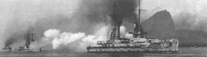 Атлантический поход (Kaiser и König Albert) ![]() König AlbertВ основе этого мероприятия лежало желание имперского морского министерства, несмотря на возражения командования флота и морского генерального штаба, полагавших совершенно недопустимым перерыв в боевой подготовке дредноутов, проверить качество турбинных установок дредноутов и убедиться в надёжности их работы в условиях длительной нагрузки при продолжительном плавании. König Albert König Albert König Albert König Albert Kaiser Kaiser König AlbertПосле обхода с юга южно-американского континента корабли зашли (2-11 апреля) в гавань Вальпараисо (Чили). Отсюда их путь лежал на родину. Обогнув в обратном направлении южную Америку, по пути посетили множество гаваней, среди которых была Байа Бланка (25-28 апреля) и Сантос (7-12 мая), 16 мая корабли вышли из Рио-де-Жанейро. В Карибском море Straßburg отделился от дивизии, а Kaiser и König Albert с заходом в Кап Верде, Фуншал на о. Мадейра и Виго направились в Киль, куда прибыли 17 июня, преодолев без существенных поломок и повреждений техники расстояние в 20000 миль. Турбоагрегаты дредноутов успешно выдержали все нагрузки при плавании в условиях тропического климата. 24 июня "практическую дивизию" распустили. Оба дредноута снова вошли в состав 5-й дивизии III-й линейной эскадры. Зима 1913-1914 гг. KaiserРезультаты игры привели командовавшего "английской" стороной к выводу, что закрытие Канала Ла-Манш и северного выхода из Северного моря является лучшим средством, чтобы путем возрастающей с течением времени блокады торговли вынудить германский флот к бою. Им же была высказана мысль, что из-за германских подводных лодок Фёрт-оф-Форт не может служить хорошей базой и лучше перенести её к северу в бухте Скапа-Флоу.