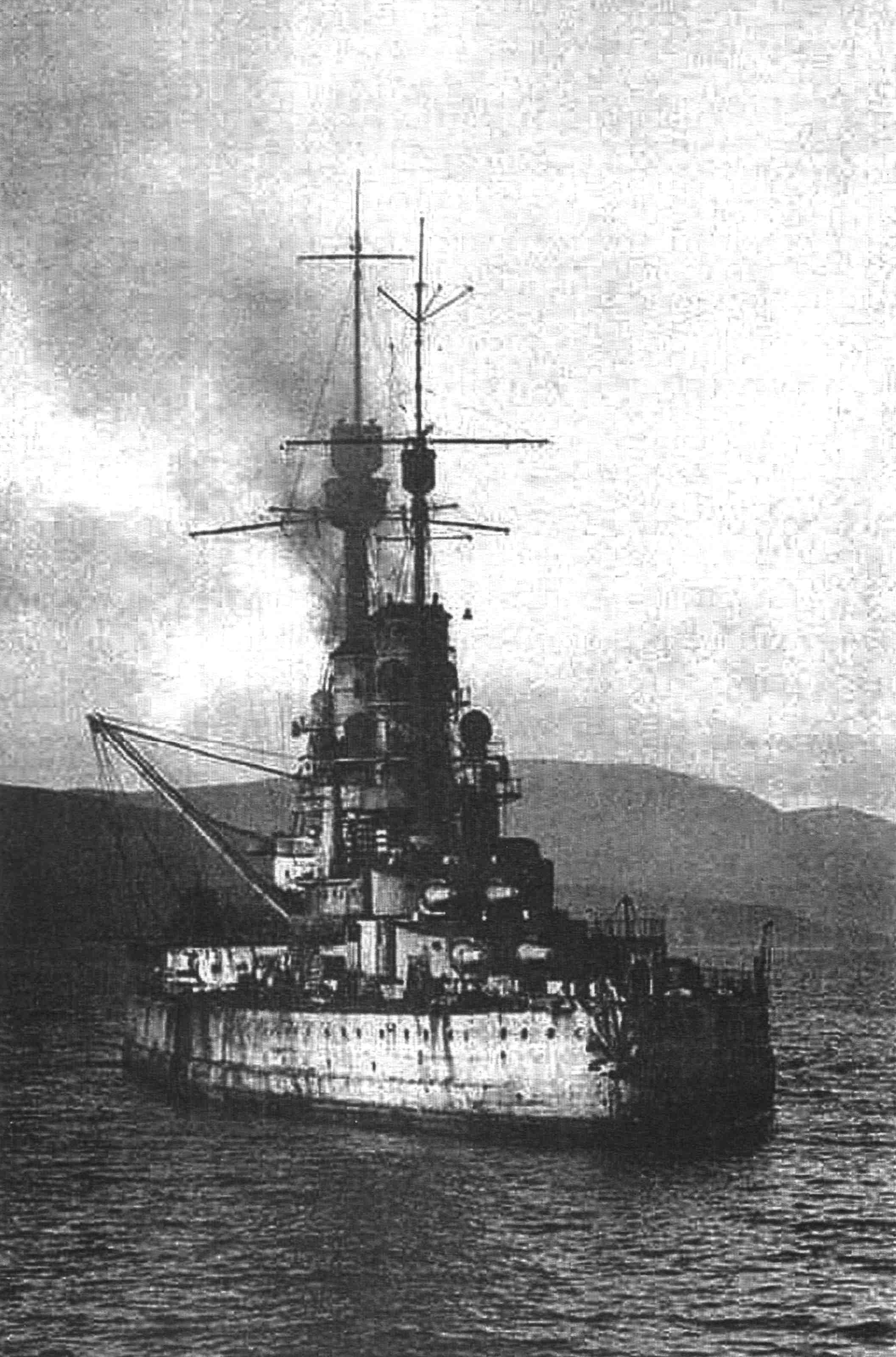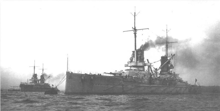 Командующий IV-й линейной эскадрой и его штаб использовали Prinzregent Luitpold для кратковременного пребывания с 19 января по 13 февраля. Kaiserin17 марта Prinzregent Luitpold (капитан 1-го ранга фон Хорнхардт) перешёл в Балтийское море для проведения учений. 18 марта в Килен-Фьорде (Кильская бухта) Prinzregent Luitpold был протаранен линейным крейсером Derfflinger, однако оба корабля не получили серьёзных повреждений. В последующий период, когда в боевых действиях на море подводная война вышла на первое место, флот Открытого моря всё чаще и чаще привлекался для обеспечения выхода и прикрытия подводных лодок. KaiserВо время похода, когда 24 апреля оперативное соединение находилось в 60 милях севернее о. Гросс, в 06.10 на Moltke произошла тяжёлая авария турбинной установки, наиболее серьёзная за всю войну, по другим данным, крейсер подорвался на британской мине к западу от Ставангера, и поход пришлось прервать. Prinzregent LuitpoldС 26 июля по 28 сентября Friedrich der Große находился на верфи в ремонте. На этот период флагманским кораблём IV-й линейной эскадры назначили Prinzregent Luitpold. 13 августа в последний раз произошла смена командования IV-й линейной эскадры, когда младший флагман контр-адмирал Меурер сменил на посту командующего эскадрой вице-адмирала Сушона, в то время как новый младший флагман контр-адмирал Гоэттэ 19 августа поднял свой флаг на борту Kaiser. Prinzregent Luitpold*** В октябре 1918 г., когда была прекращена подводная война, командующий флотом Открытого моря вице-адмирал Хиппер получил приказание повести флот в бой. Приказ остался, однако, невыполненным, так как события, происшедшие 28 октября, то есть накануне предполагавшегося выхода флота, привели командующего к выводу, что политико-моральное состояние команд настолько плохо, что думать о бое не приходится. Prinzregent Luitpold29 октября начались отказы экипажей Thuringen и Helgoland от несения службы. 30 октября на Friedrich der Große началось пассивное уклонение от несения службы, а 31 октября на нём матросы и кочегары отказались грузить уголь, повторив то же самое 1 ноября. Начавшееся 30 октября 1918 г. восстание матросов германского флота помешало Германии дать решительное сражение в Северном море. Командующий IV-й линейной эскадры и его штаб использовали Prinzregent Luitpold для кратковременного пребывания с 13 по 17 ноября. На момент подписания условий перемирия 9 ноября 1918 г. в составе германского военно-морского флота числилось 12 дредноутов и шесть линейных крейсеров. Prinzregent Luitpold