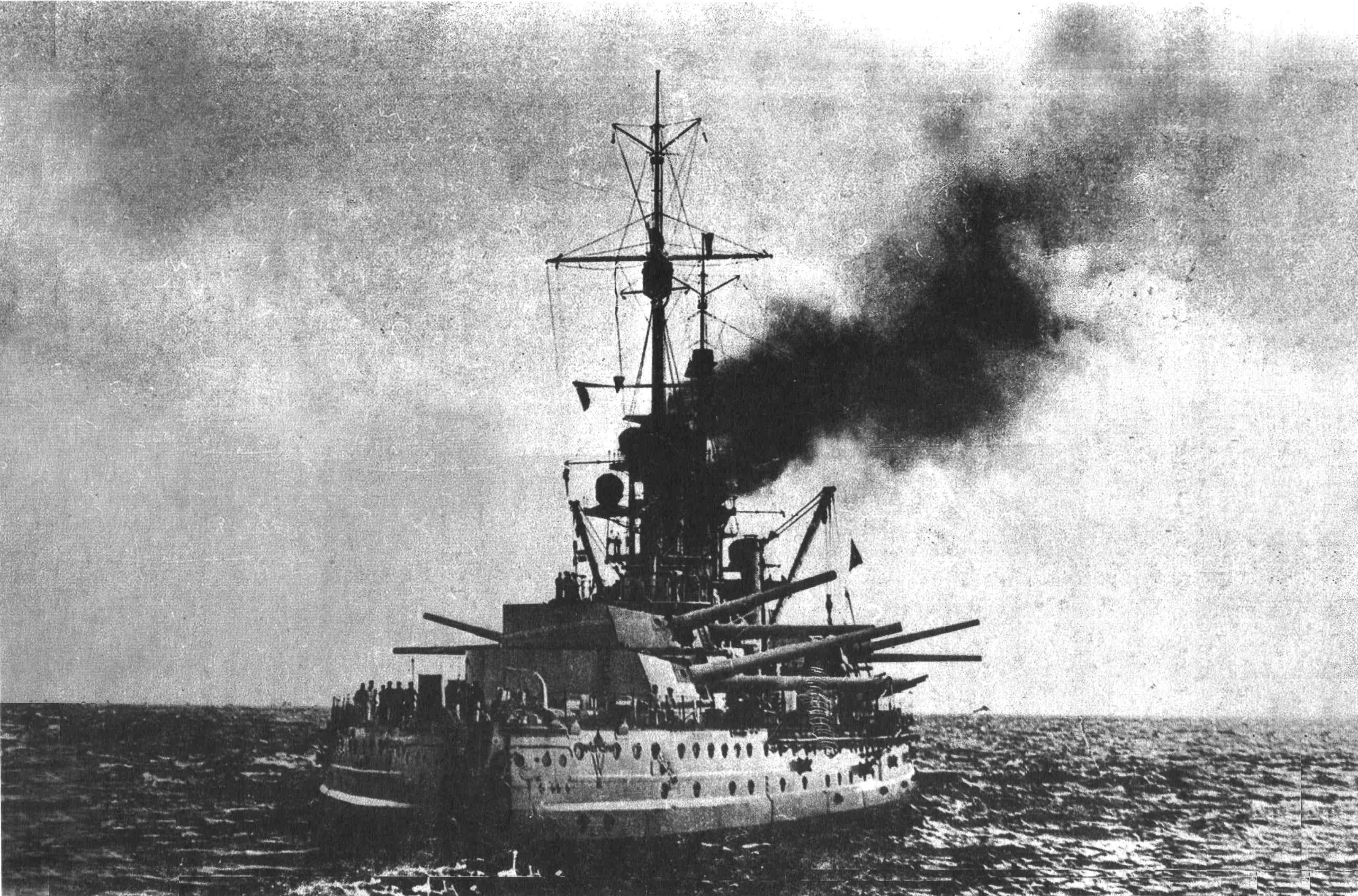 Kaiserin Kaiserin König AlbertС 18 августа по 23 сентября на имперской верфи в Киле König Albert прошёл плановый ремонт. В день окончания ремонта König Albert вышел из Киля на рандеву в Данцигскую бухту на подходах к Путцигер-Вик (теперь польский Гдыня). Prinzregent LuitpoldУтром 11 октября из Либавы вышел авангард десанта. За ним следовали III-я эскадра линкоров, флагманский Moltke, лёгкий крейсер Emden и IV-я эскадра линкоров в охранении 17 эсминцев. Затем на значительном удалении следовали транспорты с главными силами десанта. Ещё до наступления темноты 11 октября Friedrich der Große и König Albert отделились от IV-й эскадры для обстрела на рассвете 12 октября русских береговых батарей на мысе Церель полуострова Сворбе. Они же повторили обстрелы этих батарей 14 и 15 октября. Торпедные атаки входящих в Балтийский флот русских и английских подводных лодок оказались безуспешными. В ночь на 12 октября линкор Bayern и лёгкий крейсер Emden заняли огневые позиции у входа в Соэло-Зунд для обстрела батарей у мыса Серро (остров Даго) и м. Памерорт (остров Эзель), остальные семь назначались для подавления русской береговой батарей в бухте Тагалахт (остров Эзель) с целью обеспечения высадки десанта и к 04.00 заняли огневые позиции на подходах к этой бухте. При занятии позиций Bayern и Großer Kurfürst подорвались на минах и в дальнейшем были отведены в базу. Prinzregent LuitpoldВечером 13 октября вице-адмирал Шмидт приказал эсминцам при артиллерийской поддержке Kaiser начать прорыв в Рижский залив через проливы Соэло-Зунд, Моонзунд и Кассарский плёс между островами Даго и Эзель. 14 октября в 13.45 Kaiser открыл огонь по находящимся на Кассарском плёсе кораблям дозора. 305-мм снаряд одного из первых залпов линкора попал в МО эсминца "Гром", пробил днище и, не взорвавшись, ушёл в грунт. Обе турбины вышли из строя, и эсминец потерял ход. Двухкратные попытки канонерской лодки "Храбрый" взять его на буксир не удались, после чего немецкий ЭМ V.100 обстрелял ЭМ "Гром" из орудий, вызвав на нём пожар.