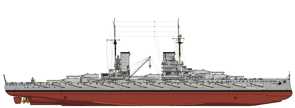 Из 15 котлов Шульца-Торникрофта три были чисто нефтяными, запас жидкого топлива увеличился до 690 т (запас угля - 3540 т). Первоначально вместо третьей турбины предполагалось установить 12000-сильный дизель, но от такого решения своевременно отказались: промышленность оказалась не в состоянии наладить выпуск надежных двигателей столь большой мощности.