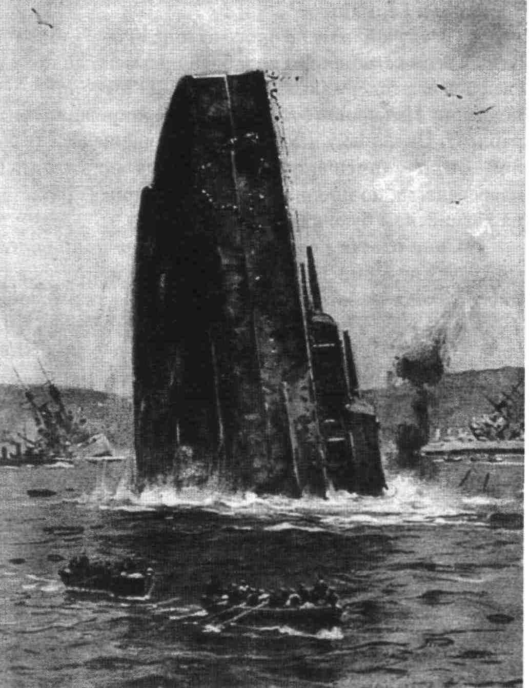355-мм бронирование башни английскими снарядами не пробивалось. Горизонтальная 38 и 76-мм броня палубы пробивалась осколками снарядов. Корабль получил 1600 т воды, что составляло 6,23% от водоизмещения. Личного состава экипажа пострадало 6%. Корабль находился в заводском ремонте 50 суток.