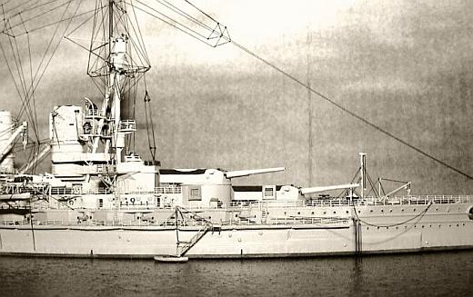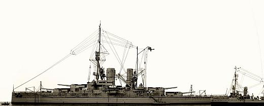 Система электропроводки Четыре главных распределительных щита располагались по одному у каждого помещения генераторов, причем на каждый из них могли коммутироваться все генераторы. Эти щиты обслуживали четыре станции: носовую левого борта, носовую правого борта, кормовую левого борта, кормовую правого борта. Каждая цепь могла запитываться от станций 2 и 3 или от станций 1 и 4, причем кабель-трассы прокладывались по коридорам с внутренней стороны центральных продольных переборок, образуя почти замкнутое кольцо. Для внутреннего освещения служили две главные цепи: „А" и „В", каждая из которых обслуживала следующие районы корабля: 1) Цепь „А". Над броневой палубой — нос и половина средней части. Под броневой палубой — половина носовой оконечности. Под броневой палубой — половина кормовой оконечности. 2) Цепь „В” Под броневой палубой — вторая половина носовой оконечности. Над броневой палубой -- корма и вторая половина средней части корабля. Под броневой палубой — вторая половина кормовой оконечности. Имелись специальные переключатели в местах, где питание главной ветви каждой из трех указанных секций могло осуществляться и от другой главной цепи. Для питания по схеме Вард-Леонарда двигателей наводки 380-мм башен или двух кормовых шпилевых двигателей и двух шлюпочных кранов было предусмотрено четыре двойных преобразователя. Каждый двойной агрегат мог обслуживать две башни и, в случае экстренной необходимости, один агрегат мог обслуживать все четыре башни. Для питания некоторых приборов, как-то: рулевого указателя, машинных телеграфов, рулевых телеграфов и т. д., было предусмотрено четыре мотор-генератора, дающих переменный ток в 50 в. Два преобразователя переменного тока обслуживали радиотелеграфные установки. Для зарядки аккумуляторов, от которых работала 12-В цепь, питавшая телефоны, ревуны, сигнальные звонки и т. п., имелось два мотора-генератора. Кормовые шпилевые двигатели находились на броневой палубе, по одному с каждого борта, и соединялись со шпинделем шпиля посредством червячной передачи. Каждый шпиль мог поднимать груз 17,8 т со скоростью 26 м/мин. Шлюпочные краны располагались на главной палубе; каждый кран имел свой электродвигатель. Грузоподъемность каждого крана составляла 12, 8 т при скорости 20 м/мин. Переносные палубные лебедки служили для погрузки угля и других целей. Каждая лебедка имела 2 барабана и могла поднимать груз около 0,5 т со скоростью 61 м/мин. Главные машинные отделения имели как искусственную так и естественную вентиляцию. Каждое носовое машинное отделение имело вентилятор с шунтовым двигателем в 23 л.с., и каждое кормовое машинное отделение — два аналогичных вентилятора с шунтовым двигателем в 15 л.с. Число оборотов этих вентиляторов могло регулироваться. Остальные вентиляторы были с шунтовыми электродвигателями с постоянным числом оборотов. Топливо Общая ёмкость угольных ям составляла 3560 т, а ёмкость нефтяных цистерн — 600 т. Уголь размещался следующим образом: в бортовых угольных ямах ниже броневой палубы 1740 т, в верхних угольных ямах вне противоосколочных переборок 1029 т, в верхних угольных ямах за противоосколочными переборками 800 т. Подача угля из многих угольных ям, расположенных ниже броневой палубы, являлась очень затруднительной. Содержащийся в них уголь служил главным образом для целей з