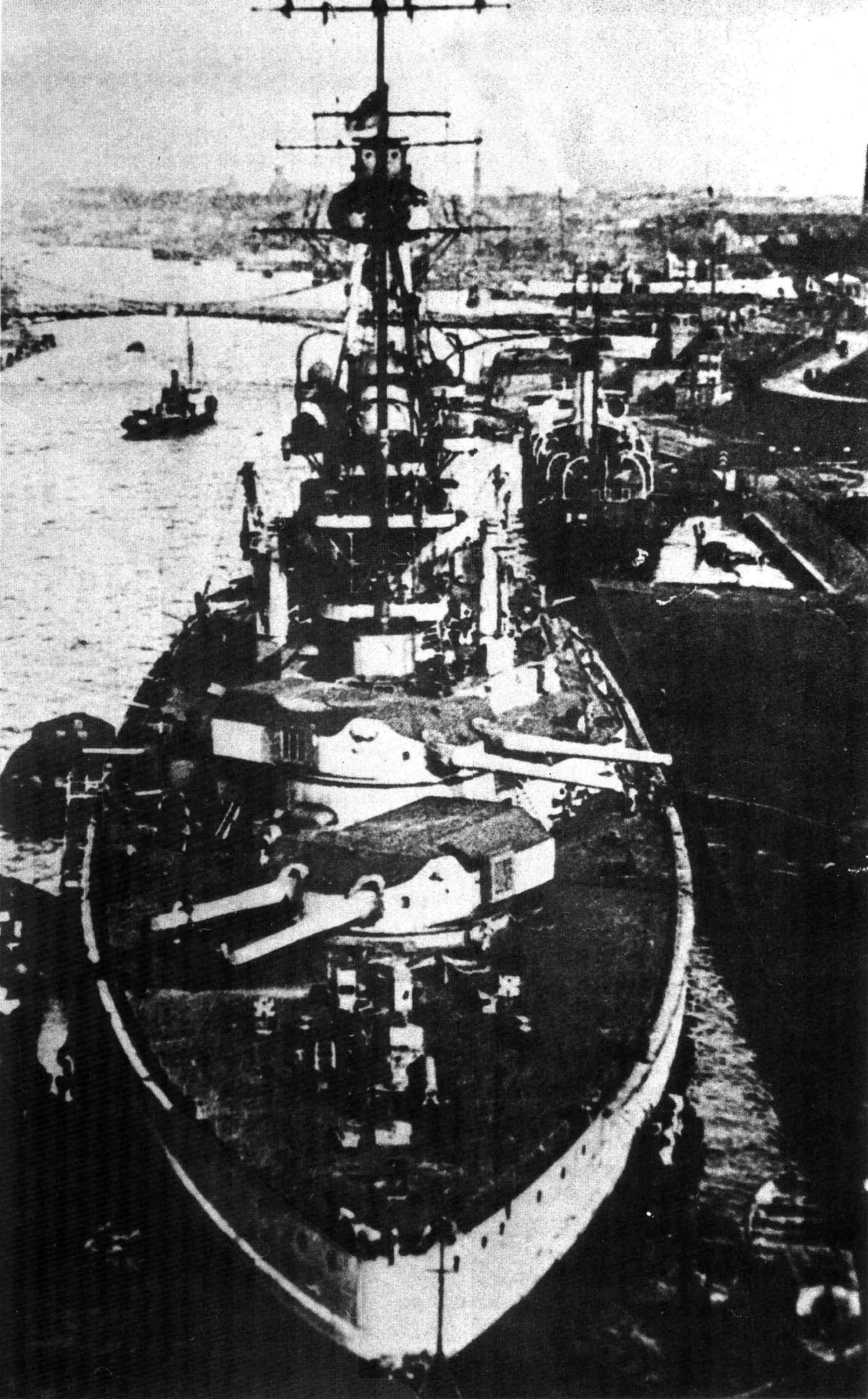 Sachsen Sachsen Sachsen Sachsen WürttembergВсе инициативы конструкторов поступили в общий военно-морской департамент министерства, ведающий разработкой основных заданий на проектирование. Произошла некоторая задержка, вызванная желанием получить данные отстрела опытного 15" орудия с полигона в Меппене, однако поскольку вопрос затягивался, общий департамент высказался за то, чтобы не менять конструкции "линкора 1915 г." по сравнению с его уже строящимися собратьями. Департамент вооружений высказывался при этом за использование 200-тонного резерва для увеличения толщины бронирования башен и казематов, усиления конструктивной подводной защиты (посредством увеличения протяжённости бронированной трюмной переборки далее за концевые башни) и увеличение доли нефтяных котлов. В итоге пристально взиравший на все эти инициативы Тирпиц отдал распоряжение строить "Ersatz-Kaiser Wilhelm II" точно по чертежам "линкора 1913 г.": гросс-адмирал опасался, что модификация проекта увязнет во времени и непременно желал выдать заказ на четвёртый корабль серии зимой 1914/1915 гг. Все предложенные нововведения было решено отложить до проектирования "линкора 1916 г.", которому так и не суждено было обрести очертания. Württemberg Württemberg Württemberg WürttembergКак ни парадоксально, единственной стороной, как-то заинтересованной в проведении хотя бы минимальных работ на "Sachsen" и "Württemberg", теперь оказались их верфи-строители, поскольку поддерживать ничтожный темп постройки было все же несравнимо дешевле, чем проводить консервацию обоих сверхдредноутов. Спуск на воду "Sachsen", первоначально намеченный на май 1916 г., состоялся лишь в конце ноября, в отношении же "Württemberg" задержка на стапеле составила целый год. Оба корабля первоначально планировалось передать флоту весной 1917 г., однако начиная с января 1918 г. на всех совещаниях в Морском министерстве по вопросам нового судостроения срок их готовности неизменно рассматривался как "проблематичный". Фотографии "Sachsen", сделанные в период его достройки на плаву после спуска на воду, позволяют убедиться в том, что по крайней мере часть его 15" орудий была установлена на место. Однако и они недолго оставались на корабле — после принятия в конце 1916 г. на вооружение германской армии "железнодорожно-позиционной" установки на основе 15"/45 морского орудия, третий из "байернов" лишился всех своих тяжёлых стволов, пошедших на укомплектование железнодорожной батареи "Макс" из семи установок. Уже готовые дизель-моторы для дизель-генераторов обоих линкоров после приостановки их строительства были переданы для завершения подводных лодок U-151 — U-157. В начале 1918 г. (примерно за 9 и 12 месяцев до расчётного момента вступления соответственно "Sachsen" и "Württemberg" в строй) работы на обоих кораблях были окончательно свёрнуты. К этому моменту вес их корпусов составлял 10800 и 10390 т (около 90 %), а на "Sachsen" смонтировали все четыре орудийные установки, обе дымовые трубы и нижнюю часть носовой надстройки. 3 ноября 1919 г., согласно условиям Версальского договора, оба линкора исключили из списков флота и в 1920 г. продали на слом. "Sachsen" был разобран в Киле в 1921 г. на Арсенальном молу, "Württemberg" в течение того же года в Россхафене, в Гамбурге.