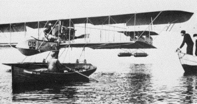рамный биплан с гондолой, крылья обтянуты тканью, 2 больших поплавка + 2 малых (под килем) |