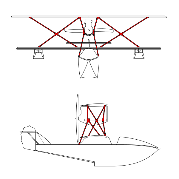 Биплан CC был преимущественно деревянной конструкции, с фанерной обшивкой однореданного корпуса и киля, все остальные поверхности имели полотняную обшивку. Крылья, установленные позади пилота, были неравного размаха и сильно разнесены по высоте. Верхняя плоскость состояла из одной детали с тремя местами крепления. Нижняя плоскость была была разделена на две части, которые крепились на корпусе лодки и имели незначительную V-форму, что бы уберечь крыло от брызг воды. Поплавки были прикреплены к крылу одной передней и двумя задними стойками и имели плоское днище. Обычное хвостовые оперение крепилось к фюзеляжу на 2 стойках.
