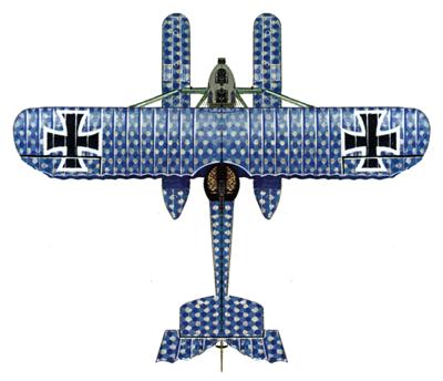 При этом летчик-наблюдатель мог стрелять в любом направлении - на самолете практически отсутствовали "мертвые зоны" для стрельбы из кормовой установки. Этого удалось добиться за счет того, что руль направления впервые в мировой практике был перенесен под фюзеляж. При этом нововведение не сказалось на управляемости самолета на всех режимах полета и при рулении на воде. Кроме задней полусферы летчик-наблюдатель мот вести огонь и вперед, поскольку пространство между верхним и нижним крылом не было закрыто тросами-растяжками - обязательным атрибутом многих бипланов того времени.
