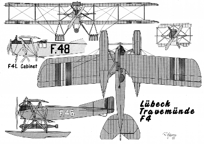 После создания в июле 1920 года морской авиабазы польского ВМФ в Паке, в августе 1920 года частная компания в Гданьске купила четыре гидросамолета, в том числе один Lübeck-Travemünde F4, который получил номер 7. Этот самолет использовался для патрульных полетов на море, для обучения экипажей в распознавании кораблей и для бомбардировок. Бомбы были весом 12,5 кг, и сбрасывались вручную наблюдателем из кабины самолета.