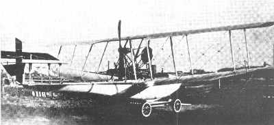 двухбалочный биплан, деревянная лодка, крылья: деревянный каркас, обтянутый тканью, 2 подпружиненные доски на крыльях вместо поплавков |