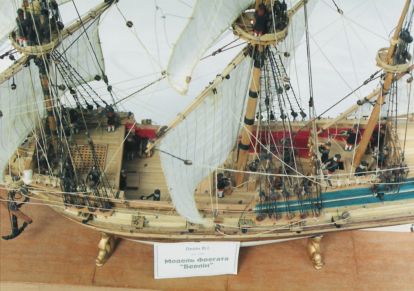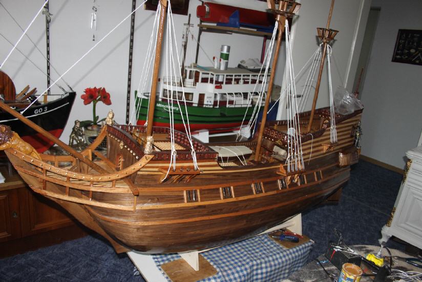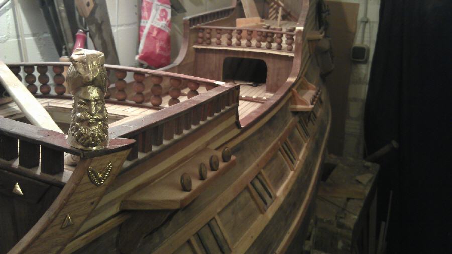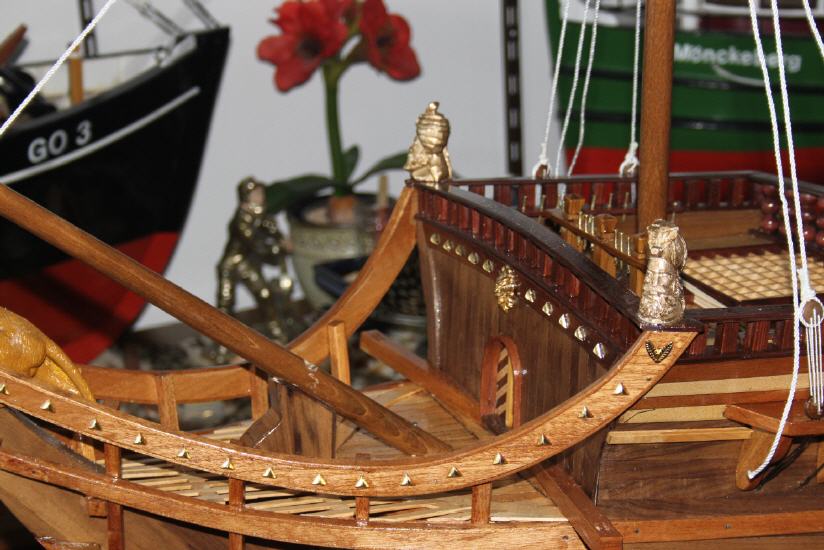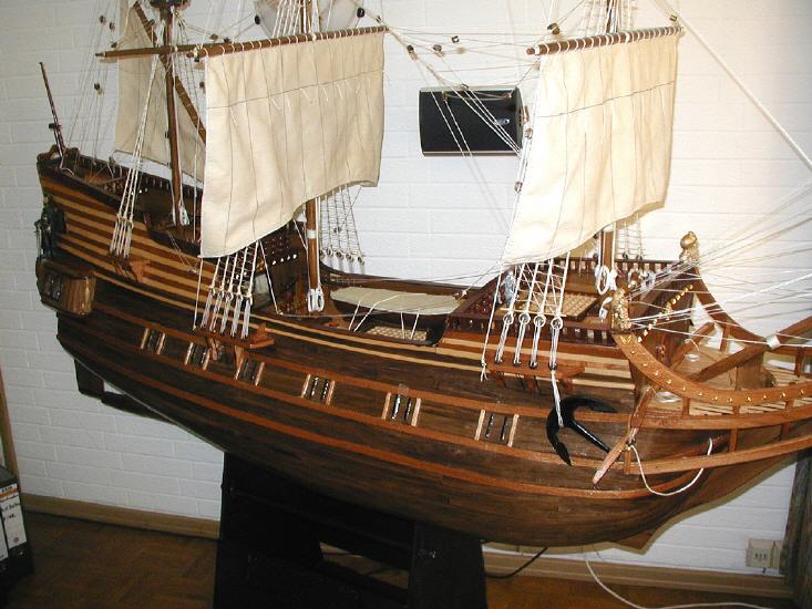 *** ОКРАСКА БРАНДЕНБУРГСКИХ КОРАБЛЕЙ Цветовая гамма была довольно простой. Преобладали темно-коричневый и черный. Пушечные ворота не были оформлены, но внутри они были окрашены в красный. Обшивка кают-кампании, юта и бака - оливково-зеленая, шканцы - матовый коричневый. Фигуры и обрамление: Свитки и части фонаря, а также гальюн были частично позолоченными, частично жёлтыми. Корма была разукрашена наиболее яркими цветами. Большие задние фигуры были окрашены в синий, желтый и красный цвета, их лица имели естественный цвет. Палубы были естественного деревянного цвета. Подводная часть корпуса конопатилась смолой, которая имела почти черный цвет. Поскольку орудия были сделаны из железа, цвет труб был черный, но якоря и другие железные устройства были окрашены. На транце большинства кораблей Бранденбурга размещался герб государства. Это был красный орел на белом фоне.