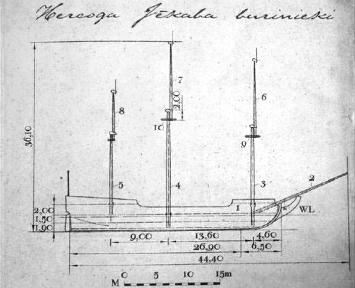 20-пушечный корвет (шлюп) Die Clementia (Кротость) и 18-пушечный Die Concordia (Согласие) в 1658 году предназначались для доставки в Гамбию грузов для колонистов. Вооружение на обоих было сокращено для размещения грузов: Clementia - 60 ластов груза (ок. 120 т) и 6 пушек, Concordia - 70-80 ластов груза (ок. 140-160 т) и 12 пушек. Clementia успешно выполнила рейс и на обратном пути с 46-п. кораблём Pax в октябре 1658 зашла в Копенгаген, где встретили направляющийся в Гамбию Concordia. Там экипажи узнали о войне со Швецией и пленении герцога Якоба. При попытке выйти в дальнейший путь Concordia был захвачен шведами и сожжён. Во избежание захвата Clementia и Pax формально перешли в состав Бранденбургского флота под видом аренды. По окончании войны в 1660 корабли вернулись в Курляндию. Дальнейшая судьба неизвестна. Lux 15-пушечный корвет (шлюп) Der Lux (Рысь) готовился в транспортный рейс и при этом был почти разоружён, что бы освободить место для груза - 100 ластов (ок. 200 т) груза и всего 2 пушки. При захвате Курляндии шведами в октябре 1658 года он эвакуировался из Виндау в Данциг, где находился до 1659 года. Prinz von Churlandt 24-пушечный корвет (шлюп) Der Prinz von Churlandt (Курляндский принц), который также называют Der jungste Prinz von Churlandt (Младший курляндский принц) просто упоминается в 1558 году безо всяких подробностей. Jacobus Minor 24-пушечный корвет (шлюп) Jacobus Minor (Малый Яков) строился в Виндау и уже был спущен на воду, когда в октябре 1658 года шведы захватили Курляндию. В 1659 так и не достроенный шлюп был либо сожжён, либо уведён шведами. Fortuna, Ringeltaube и Drey Heringe Кроме того, встречается упоминание ещё о трёх корветах (шлюпах) без даты и другой информации: о 24-пушечном Die Fortuna (Удача), 24-пушечном Die Ringeltaube (Вяхирь, вид голубя) и 20-пушечном Die Drey Heringe (Три селёдки). ПОСЛЕ ШВЕДСКОЙ ВОЙНЫ
