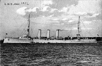 Тем временем "Arethusa" и "Fearless" попали под огонь новых подходивших германских крейсеров. Это были "Cöln" и идущий за ним "Stettin".