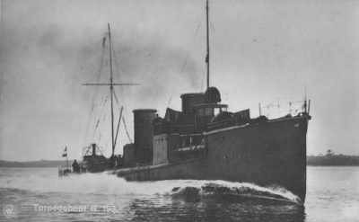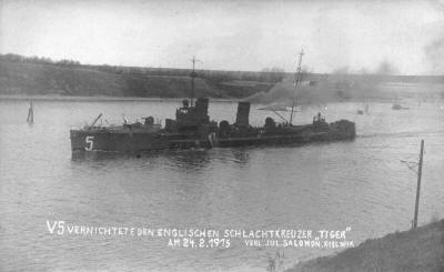 В этот момент германский легкий крейсер «Штеттин» открыл огонь по английским миноносцам. Команда шлюпки поднялась на свой миноносец. Я вместе с тремя матросами отказался подняться на борт, так как мы не хотели попасть в плен. Английский миноносец дал полный ход, и английский матрос, видимо, по ошибке, отдал фалинь.