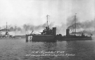 После этого ко мне подошла еще одна маленькая английская шлюпка, на которой находилось 5 человек из состава команды V-187. Все три шлюпки долго гребли по направлению на OSO, к линии сторожевого охранения. Позднее они были приняты миноносцами G-4 и G-11. Тяжелораненным была сделана перевязка, шлюпки были потоплены. После этого миноносцы подняли из воды шесть убитых, осмотрели место гибели V-187 (в поисках остатков карт и книг) и пришли в Гельголандскую гавань. Отсюда портовой пароход «Арнгаст» доставил в Вильгельмсгафен 6 убитых и 44 уцелевших, из них 7 тяжело и около 20 легкораненных.