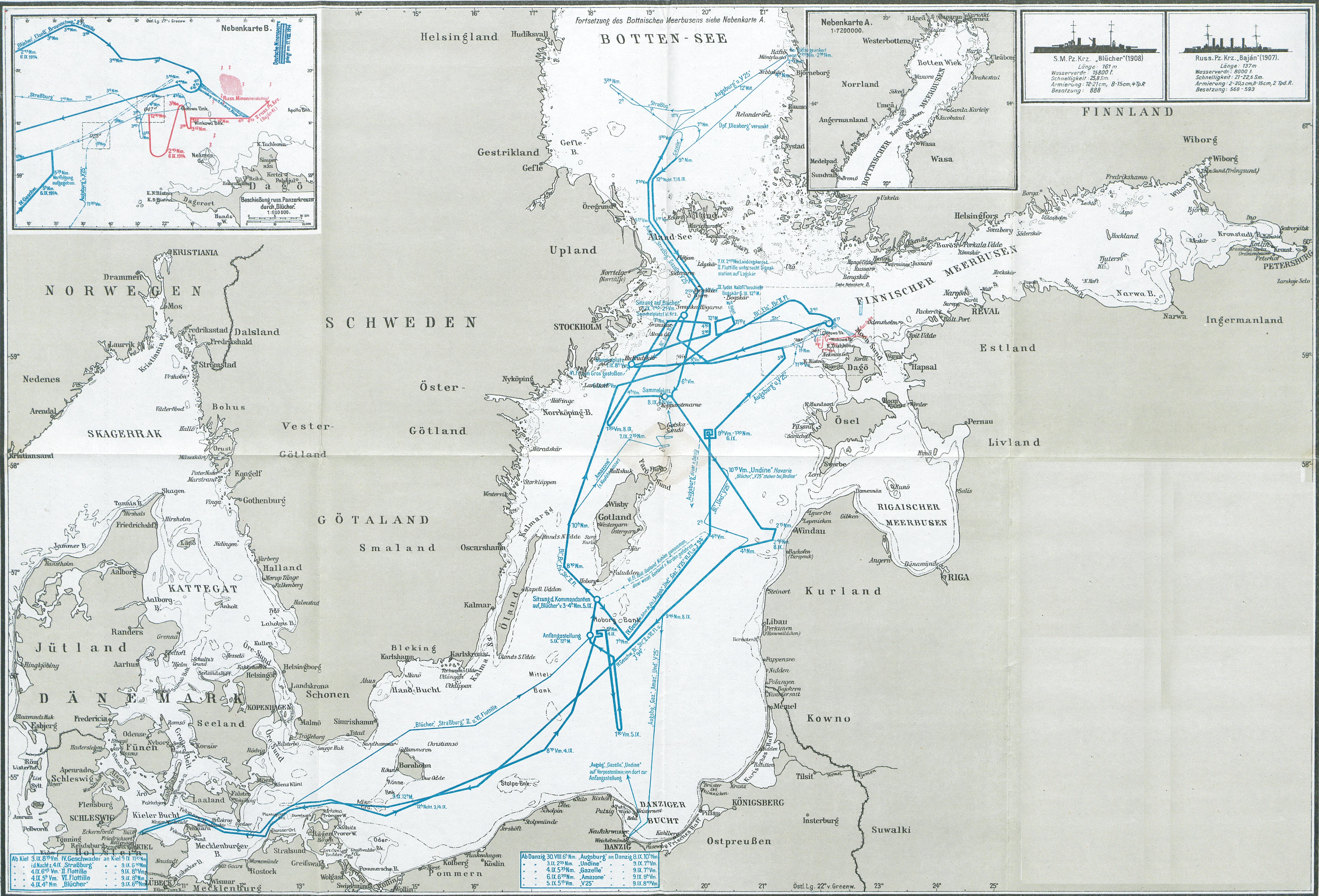 | Herausgegeben vom Marine-Archiv, unt. E. v. Mantey. Der Krieg in der Ostsee 1914-1918. Erster Band, Verlag von E. S. Mittler K Sohn; Berlin 1922. |