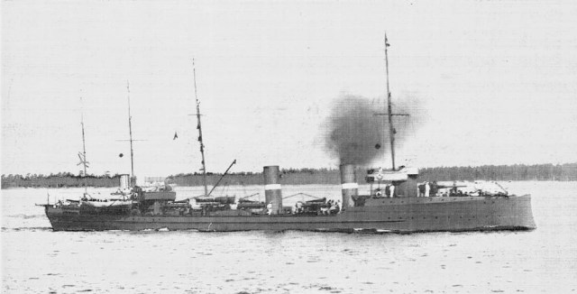 | разведывательные силы в восточной Балтике - контр-адмирал Хопман - 1 броненосный и 3 малых крейсера |