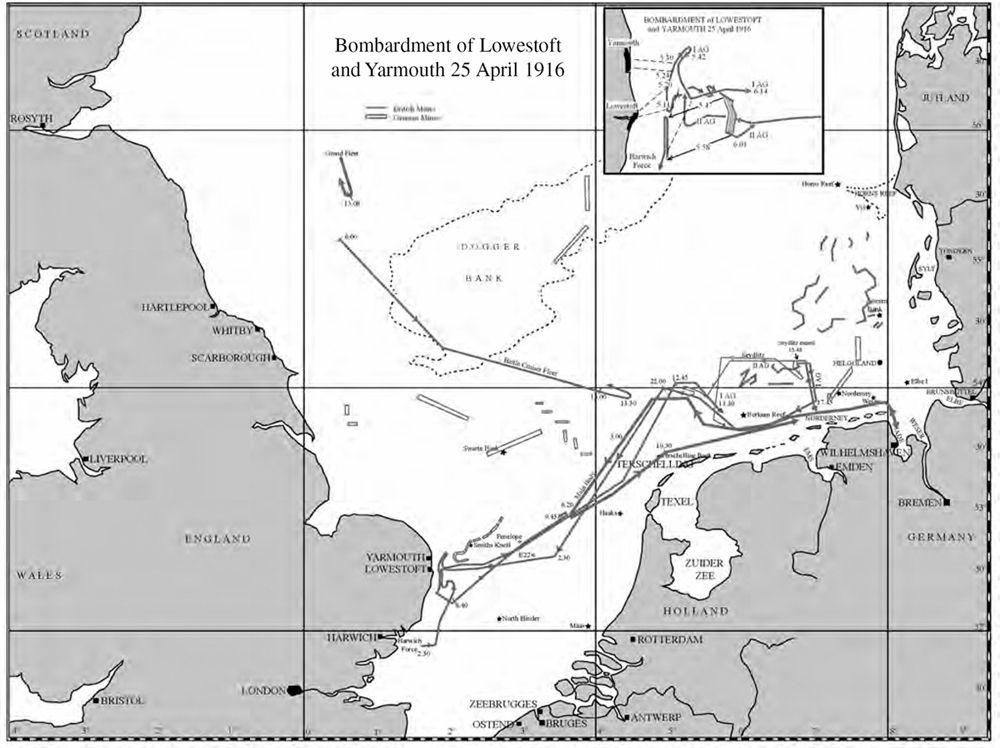 Наиболее удобными объектами нападения являлись английские прибрежные города Ярмут и Лоустофт. Первый служил базой для английских подводных лодок, действовавших в Гельголандской бухте. Набег приурочили к 24 апреля 1916 г. — дате начала восстания шинфейнеров в Ирландии. Линейным крейсерам, сопровождаемым 2-й группой разведывательных кораблей, 6-й и 9-й флотилиям эсминцев предстояло обстрелять эти английские города на рассвете 25 апреля.