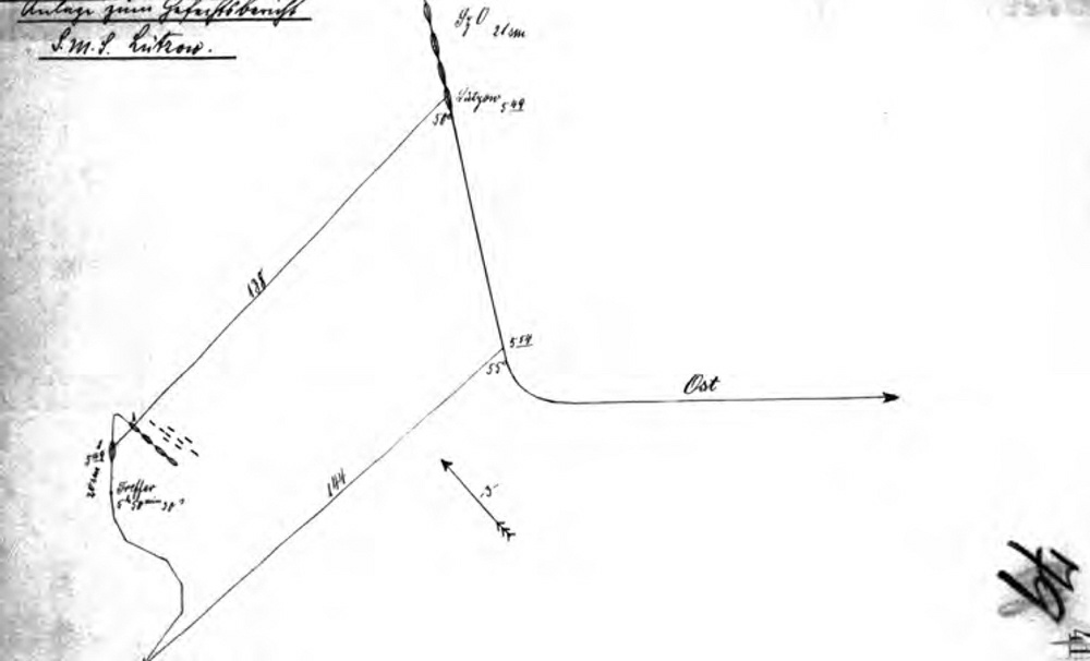 Ночью 24-25 апреля было очень темно, но видимость была хорошей и дул легкий юго-восточный бриз. В 4.15 прошли красный сигнал для подводных лодок, а в 4.55 в одном румбе по правому борту был замечен плавучий маяк "Corton". В 5.06 разведгруппа повернула направо и легла на курс NNE. Ветер был SSE, силой 2 балла, было ясно, видимость была хорошей. Вдали на юге были замечены четыре вражеских крейсера.