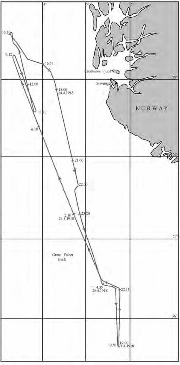 23-25 апреля 1918 г. состоялся последний дальний боевой поход флота Открытого моря. В составе оперативного соединения находились 1-я и 2-я группы разведывательных кораблей, I-я, III-я и IV-й линейные эскадры. Выход в северную часть Северного моря производился с целью выйти на маршрут конвоев Фёрт-о-Форт (Великобритания) — Берген (Норвегия) для их перехвата и разгрома.