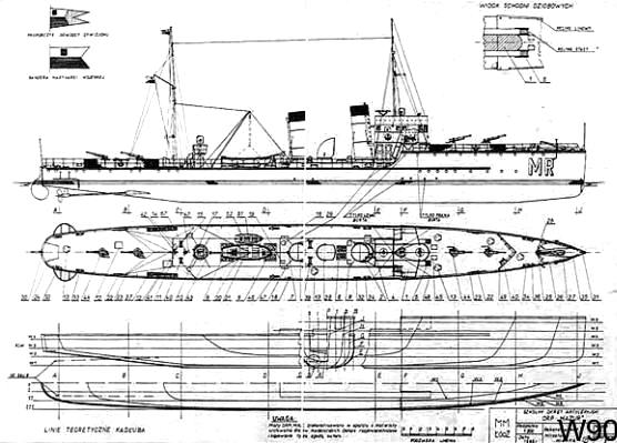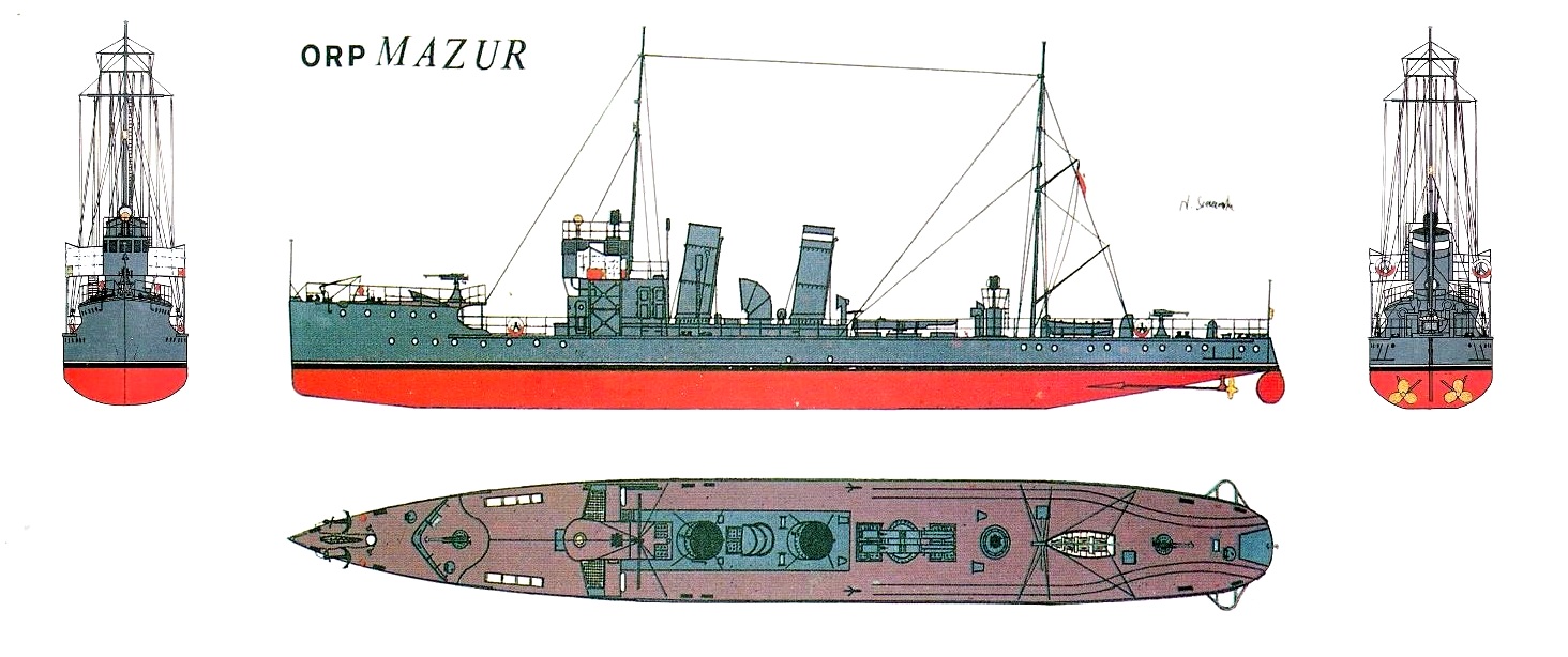 С 12 декабря 1920 31 августа 1921 польские "Mazur" и "Kaszub" прошли ремонт на британской государственной верфи H.M. Dockyard в Розайте. После передачи польским морякам на "Mazur" из вооружения оставалась одна носовая 88 мм пушка без замка.