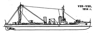 Один из миноносцев серии, V-25, в экспериментальных целях был оборудован площадкой над МО для размещения гидросамолёта Friedrichshafen FF-33B.