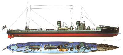 В конце войны на всех уцелевших миноносцах в корме разместили сбрасыватель для глубинных бомб.